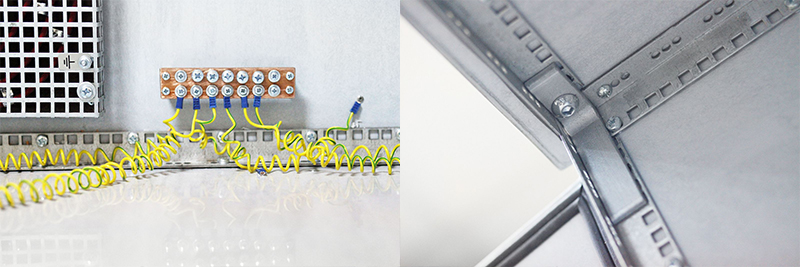 Угловое соединение термошкафа с системой заземления.